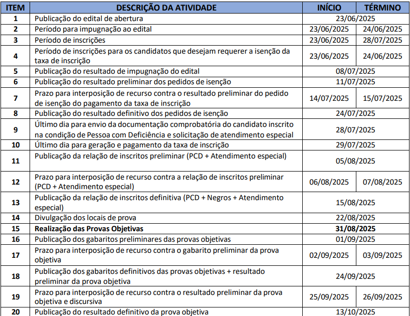 Observação: As datas estão sujeitas a alterações. Recomenda-se acompanhar o site oficial da IDECAN para atualizações.